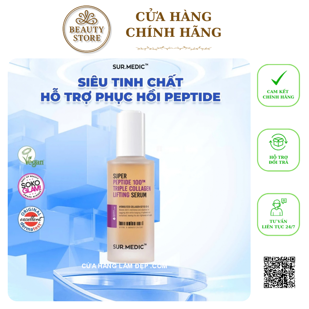 Tại hệ thống Cửa Hàng Làm Đẹp, sản phẩm Siêu Tinh Chất SUR.MEDIC Super Peptide 100TM Collagen Lifting Serum Phục Hồi Và Trẻ Khỏe Da 50ml từ Hàn Quốc có giá 680.000 VNĐ