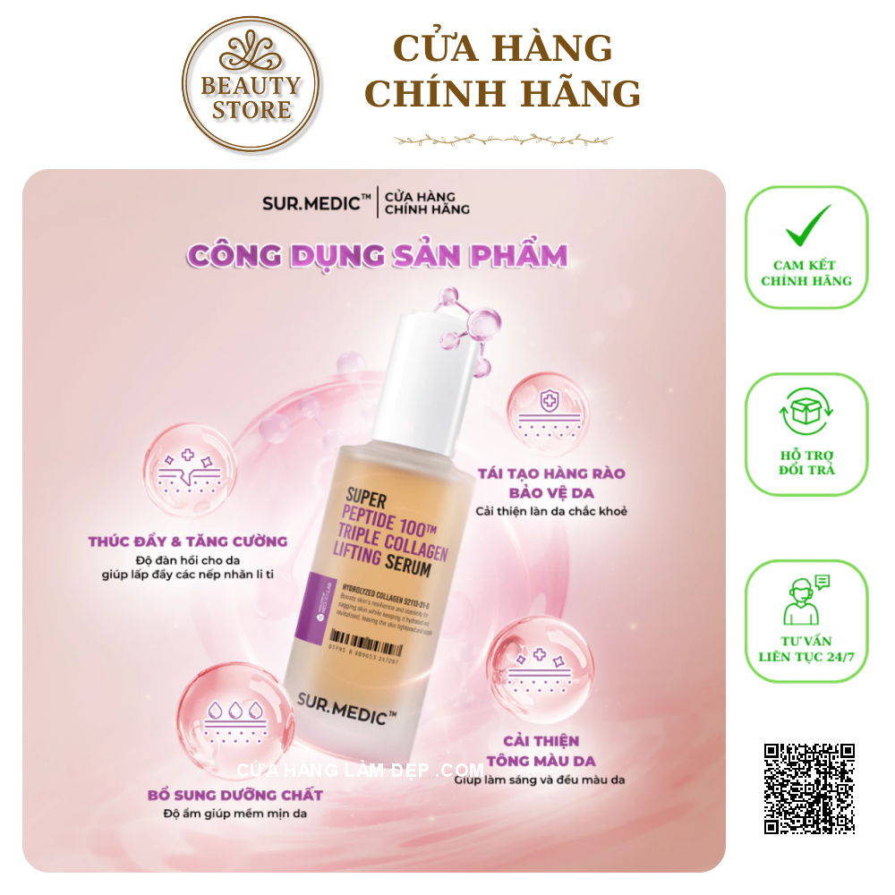 3. Công dụng Siêu Tinh Chất SUR.MEDIC Super Peptide 100TM Collagen Lifting Serum Phục Hồi Và Trẻ Khỏe Da