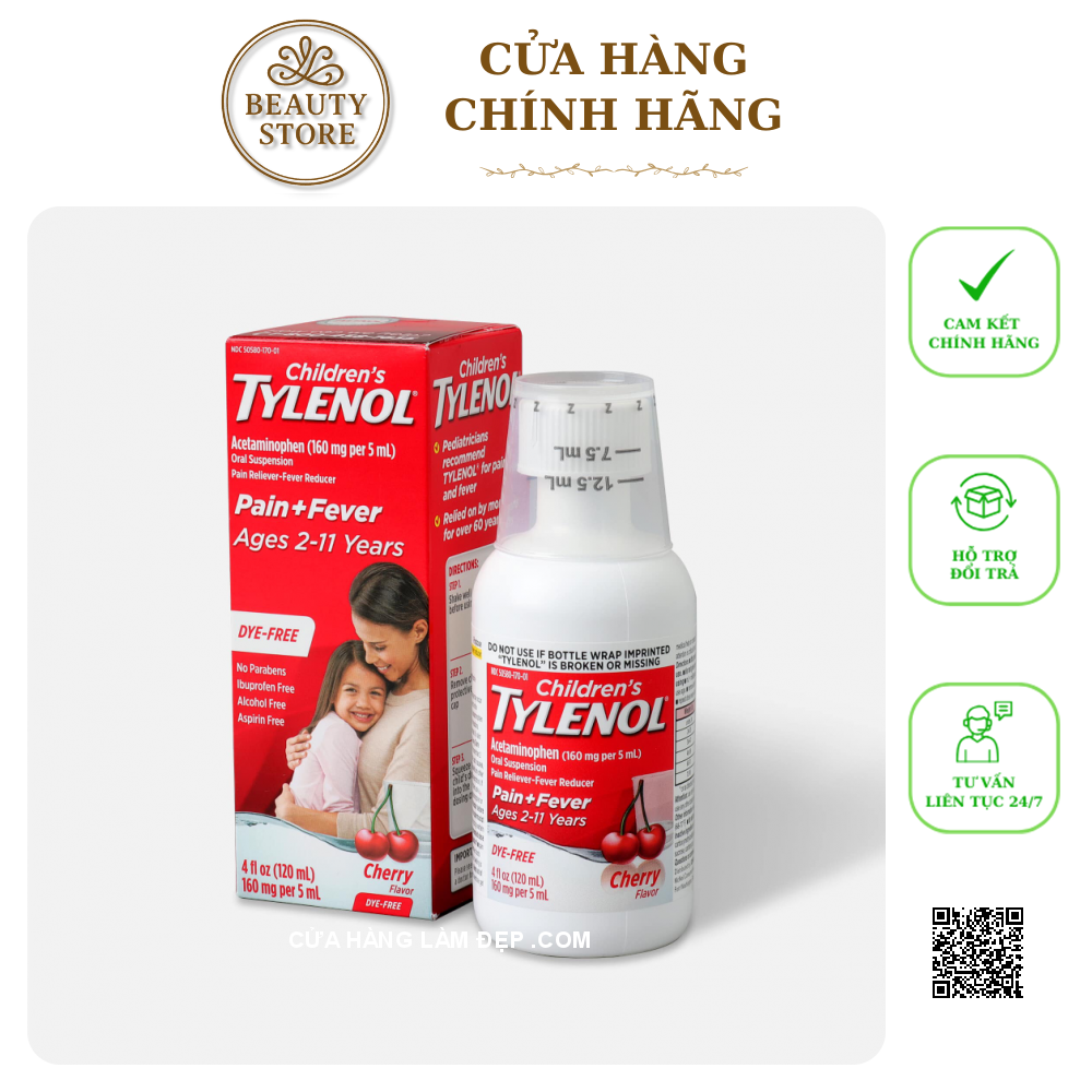 Công Dụng Siro , Cho Trẻ 2-11 Tuổi Children’s Tylenol Pain Fever Vị Cherry: