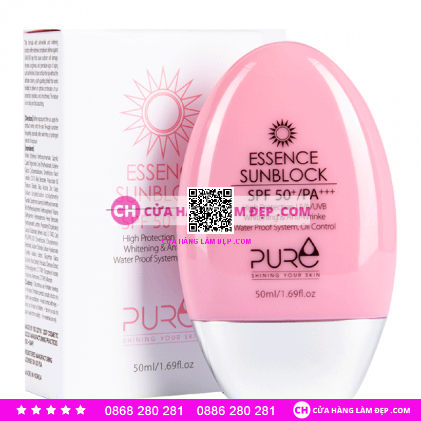 Sản Phẩm Sữa hỗ trợ Hỗ Trợ Chống Nắng Pure Essence Sunblock SPF 50+/PA+++ có xuất xứ từ Hàn Quốc.