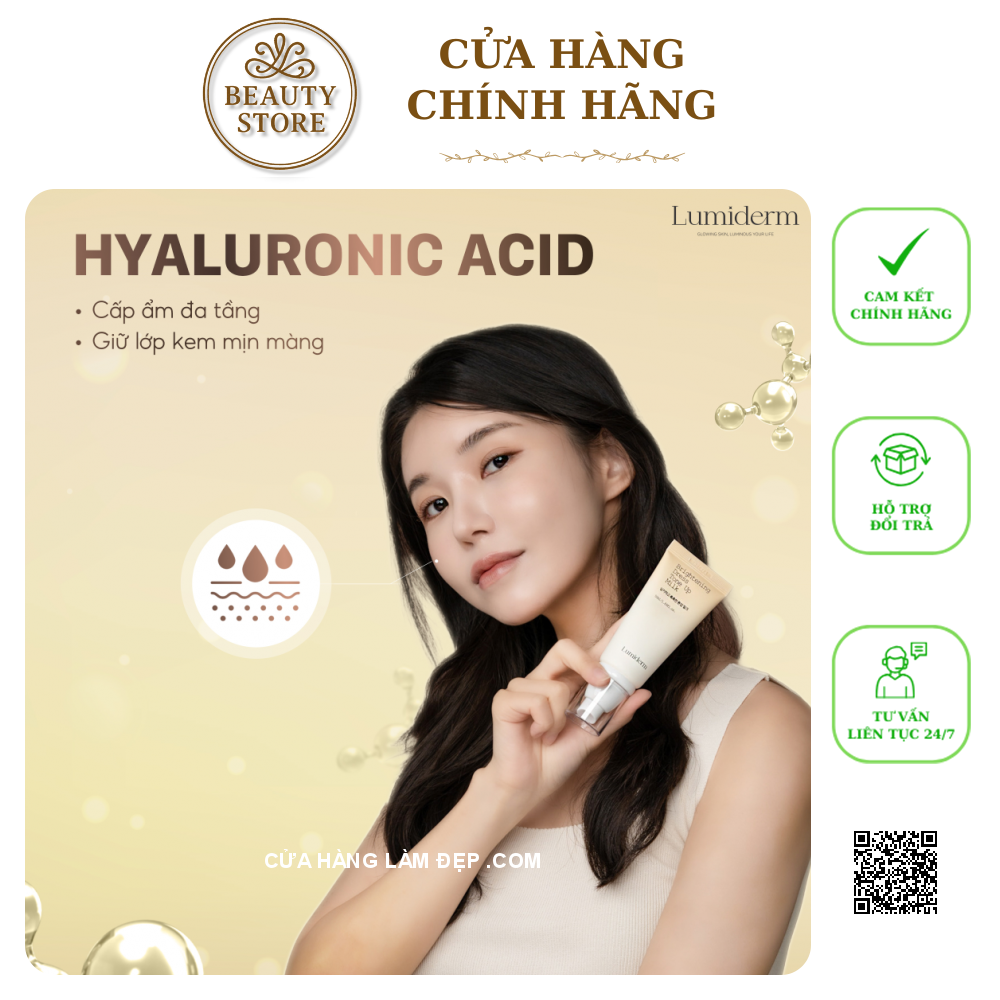 - Phức hợp 7 loại muối của Hyaluronic Acid (Sodium Hyaluronate, Hydroxypropyltrimonium Hyaluronate, Hydrolyzed Hyaluronic Acid, Sodium Acetylated Hyaluronate, Hyaluronic Acid, Sodium Hyaluronate Crosspolymer-2, Potassium Hyaluronate): Cấp ẩm đa tầng, nuôi dưỡng tận sâu trong da, giúp da luôn đủ ẩm và căng mịn, ngăn chặn tình trạng khô da. Giúp lớp che phủ mịn màng hơn và giữ được lâu hơn trên da.
