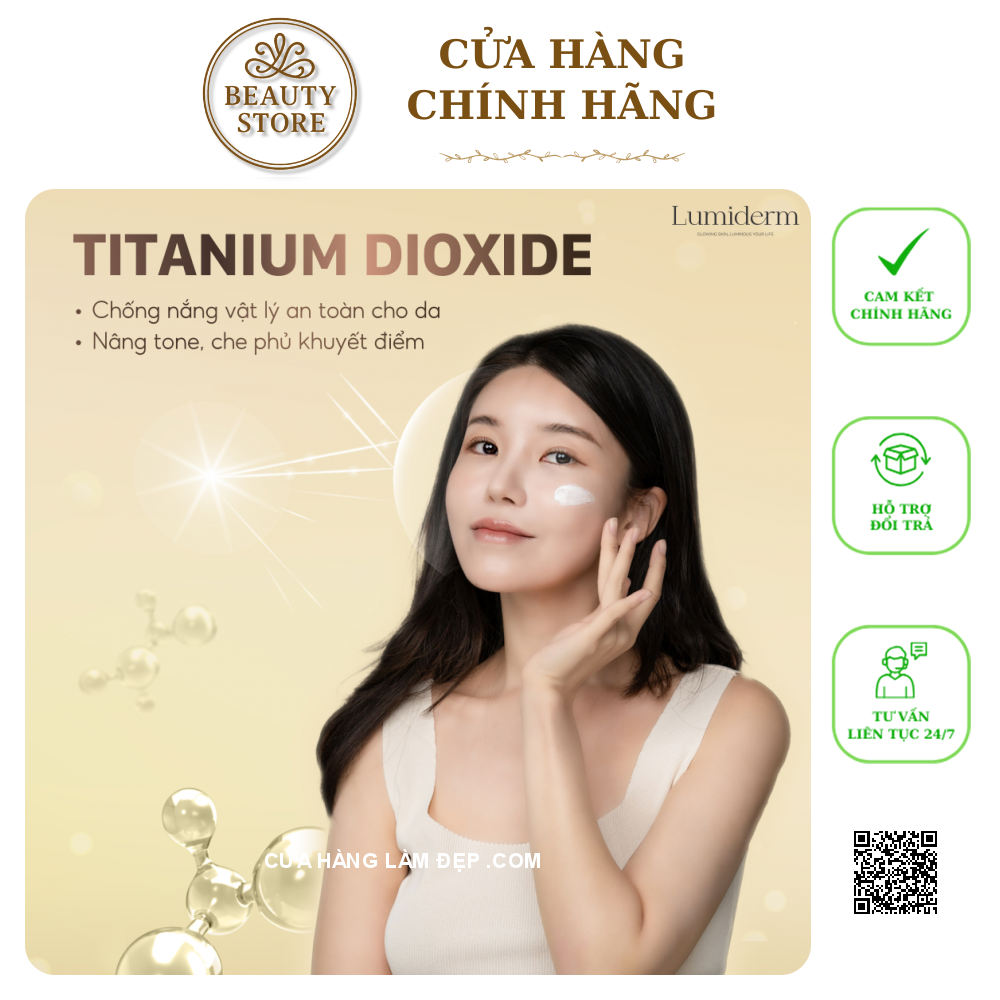 - Titanium Dioxide: Có tác dụng hỗ trợ Hỗ Trợ Chống nắng và nâng tone, tạo độ phủ giúp da mịn màng hơn. Đặc biệt Titanium Dioxide còn được biết đến là một thành phần hỗ trợ Hỗ Trợ Chống nắng an toàn nhất, phù hợp cho cả da nhạy cảm, hoặc da dễ nổi mụn.