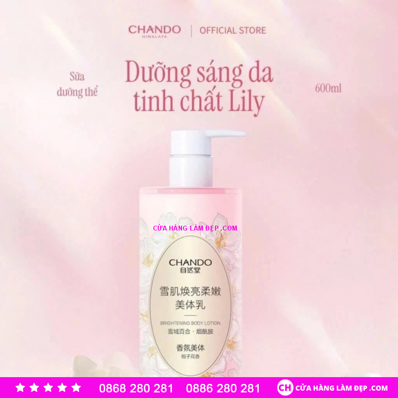 Sữa Dưỡng Thể Chando Himalaya Brightening Body Lotion Trắng Sáng Da Từ Tinh Chất Lily Himalaya 600ml Từ Trung Quốc được khách hàng của Hệ Thống Cửa Hàng Làm Đẹp đánh giá cao.