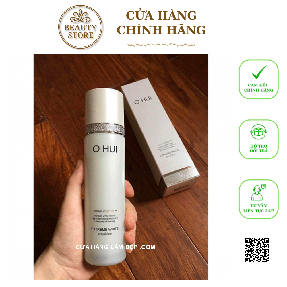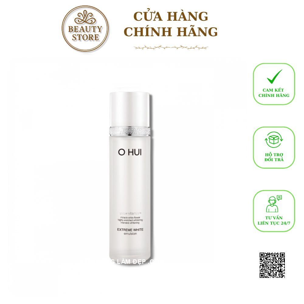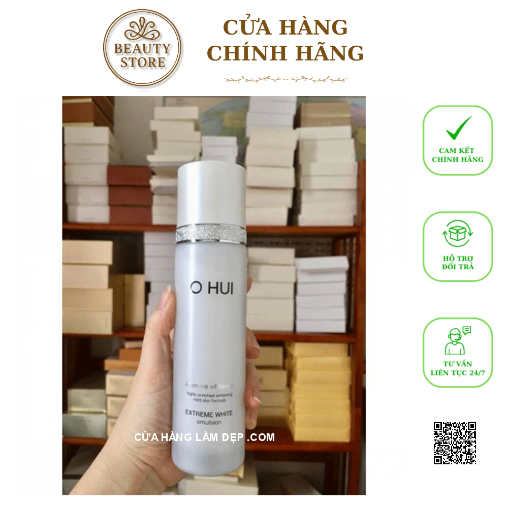 - Sữa Dưỡng Trắng Da Extreme White Emulsion Ohui là một trong những bước cơ bản để chăm sóc da. Cung cấp nước và các dưỡng chất cần thiết để làn da mềm mại hơn. Cải thiện sắc tố trên da, mang làn da trắng sáng, rạng rỡ trở lại với bạn. Được thiết kế cao cấp với chai thủy tinh trắng và đường vân lấp lánh bên dưới nắp xoay, sản phẩm tạo cảm giác chắc chắn, dễ chịu khi cầm trên tay. Đặc biệt là mùi hương thơm thoang thoảng đặc trưng của các dòng sản phẩm Ohui Extreme White.