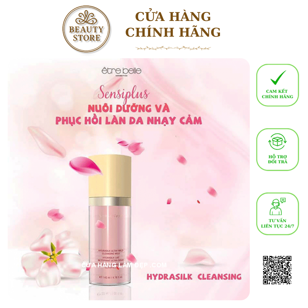 - Sữa làm sạch dịu nhẹ cho da khô, nhạy cảm, kích ứng Sensiplus Hydrasilk Cleansing Milk Être Belle sẽ giúp làm sạch nhẹ nhàng bụi bẩn và lấy đi lớp trang điểm, mỹ phẩm trên da chuyên sâu, cho làn da lúc nào cũng sạch thoáng, mềm mịn.