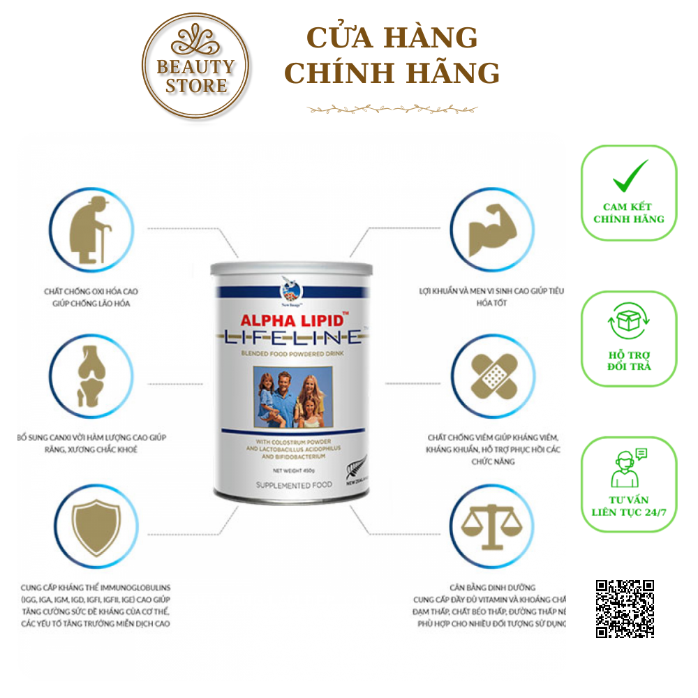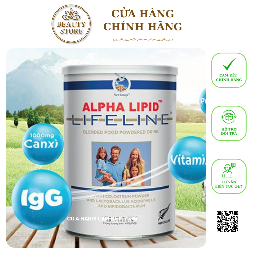 -Sữa non alpha Lipid lifeline thực phẩm bổ sung dinh dưỡng được sản xuất dưới dạng sữa bột giúp tăng cường sức khỏe nâng cao sức đề kháng, phòng ngừa suy giảm miễn dịch, phục hồi và tái tạo tế bào mầm, làm chậm quá trình lão hóa kéo dài tuổi thanh xuân.