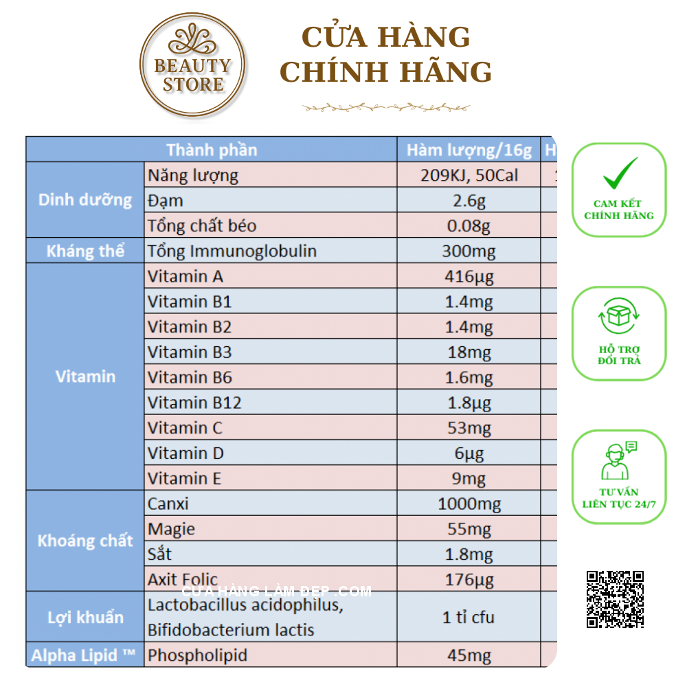 2. Thành Phần Sữa Non Alpha Lipid Lifeline Hỗ Trợ Tăng Cường Sức Khỏe
