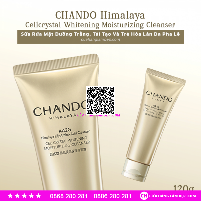 Tại hệ thống Cửa Hàng Làm Đẹp, sản phẩm Sữa Rửa Mặt CHANDO Himalaya CellCrystal Brightening & Anti-Aging Facial Cleanser Hỗ Trợ Dưỡng Trắng & Cải Thiện Da Lão Hoá 120g Từ Trung Quốc có giá 620.000 VNĐ