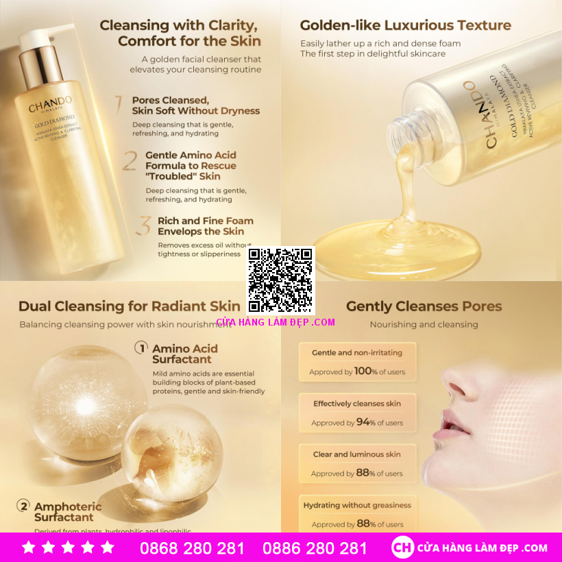 Hướng Dẫn Sử Dụng Sữa Rửa Mặt Chando Himalaya Gold Diamond Himalaya Usnea Extract Active Reviving & Clarifying Cleanser: