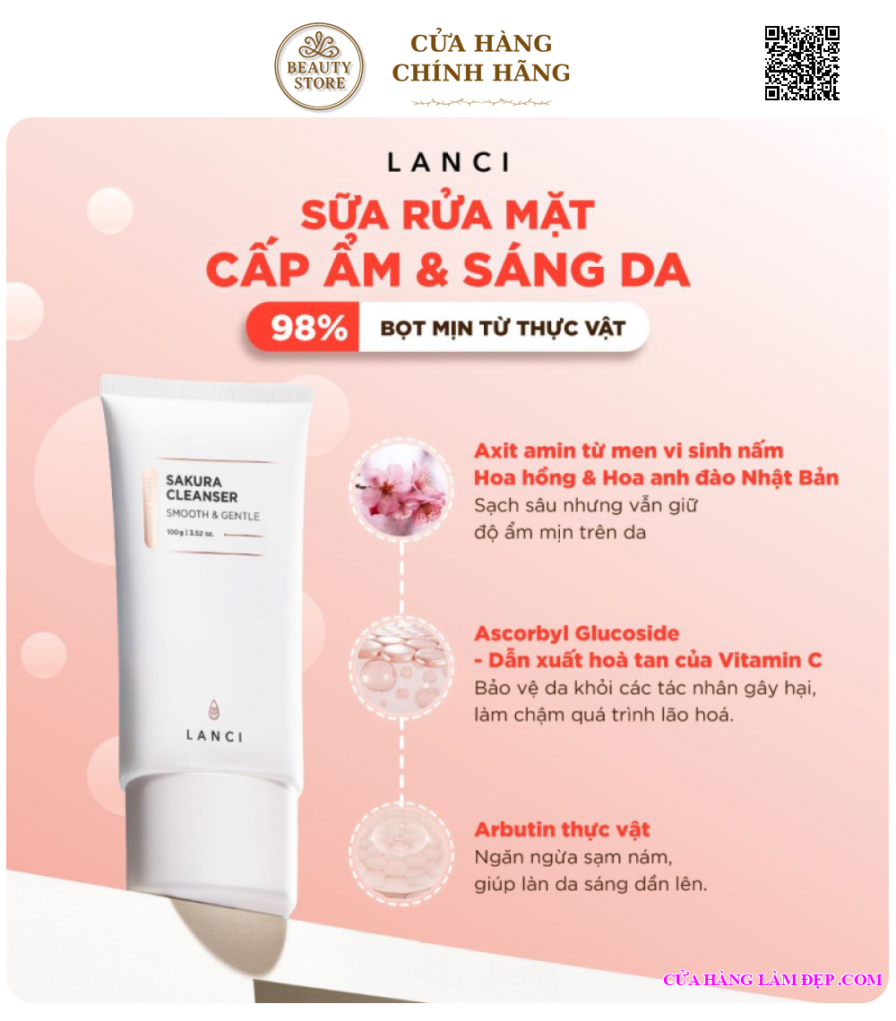 - Bạn có thể tìm mua Sữa Rửa Mặt Dịu Nhẹ Lanci Sakura Cleanser qua website: cuahanglamdep.com