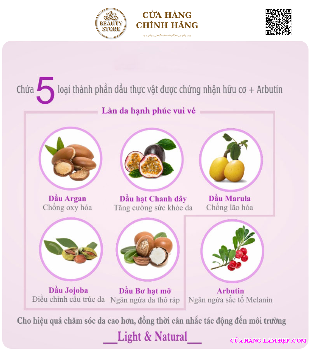 - Dưỡng da trắng sáng, trong suốt nhờ thành phần Arbutin.
