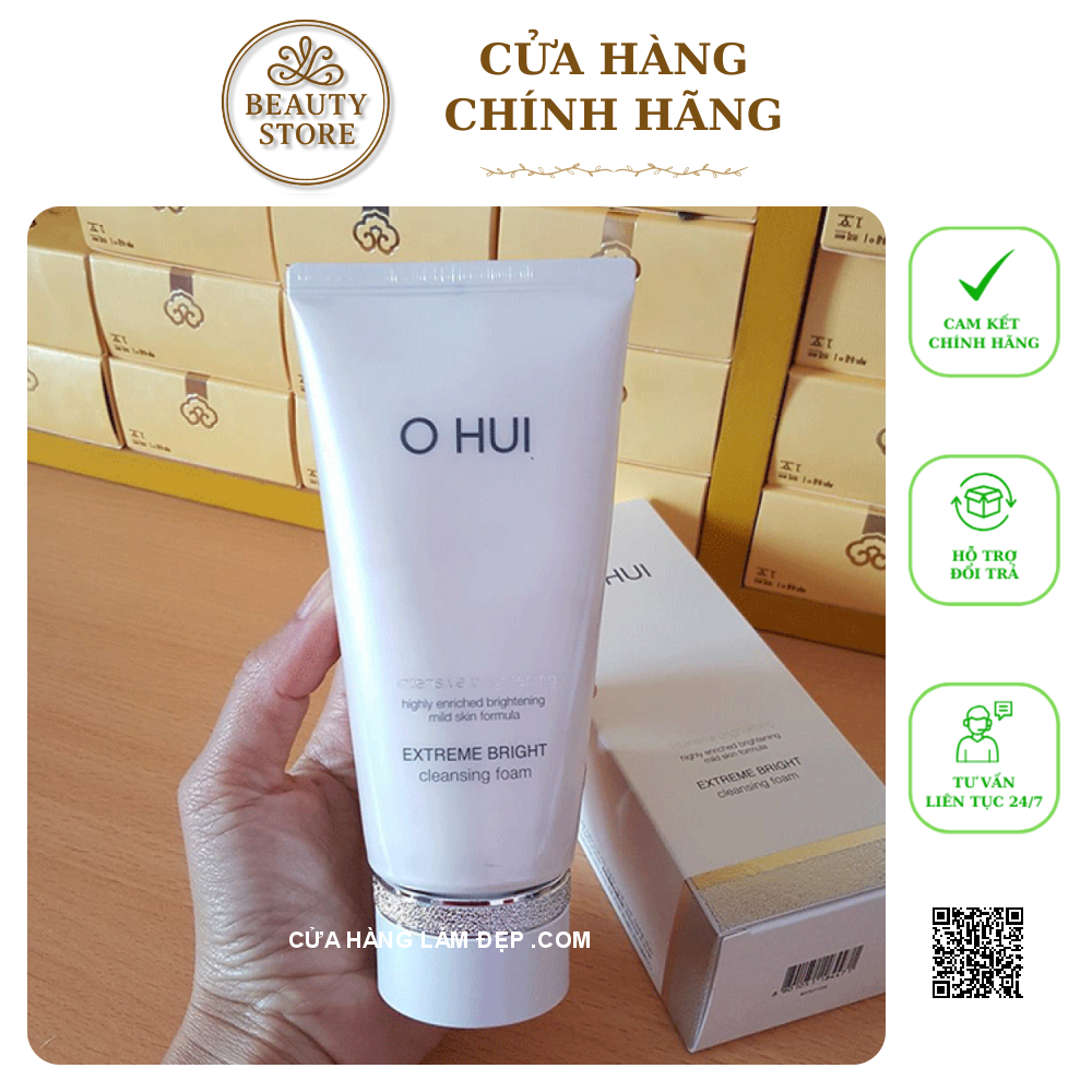 - Sữa Rửa Mặt Extreme Bright Cleasing Foam Ohui làm sạch bụi bẩn, Tinh chất chết trên da, giúp da ẩm mịn, giảm nguy cơ nổi mụn và giúp da dễ dàng hấp thu dưỡng chất cho những bước làm đẹp tiếp theo.
