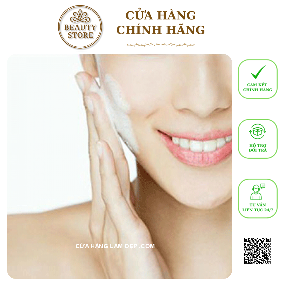 + Làm ướt mặt với nước, lấy 1 lượng sữa rửa mặt vừa đủ ra lòng bàn tay. Tạo bọt cùng với 1 ít nước.