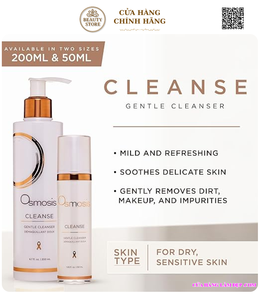 Tại hệ thống Cửa Hàng Làm Đẹp, sản phẩm Sữa Rửa Mặt Dịu Nhẹ Cleanse Gentle Cleanser Osmosis Beauty có giá 1.600.000 VNĐ
