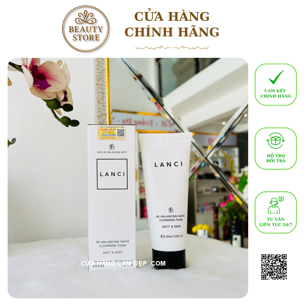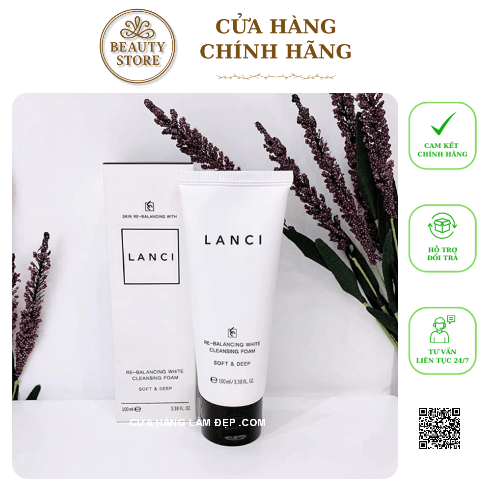 - Sữa Rửa Mặt Re-Balancing White Cleansing Foam Lanci làm sạch sâu, loại sạch chất bẩn và Tinh chất chết, giúp da khỏe mạnh, trắng hồng mịn màng. Các tinh chất từ thiên nhiên còn giúp cấp ẩm, làm mềm da, thu hẹp lỗ chân lông, tăng đàn hồi, giảm nếp nhăn.