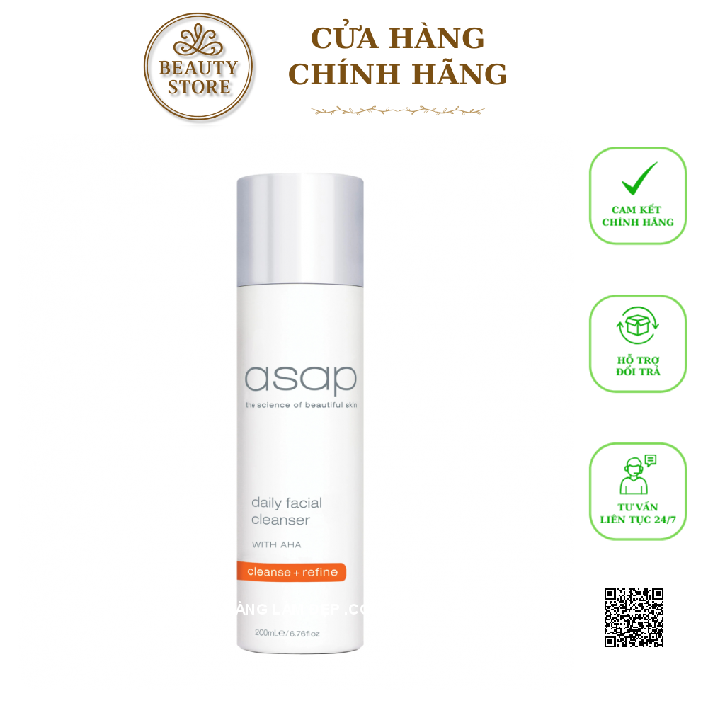 Với mong muốn mang đến cho phái đẹp 1 giải pháp làm sạch da an toàn, hiệu quả cao, Asap đã cho ra đời sữa rửa mặt mang tên Asap Daily Facial Cleanser. Sữa rửa mặt giúp loại bỏ hoàn toàn lớp trang điểm, bụi bẩn, tạp chất,…tận sâu trong lỗ chân lông mà không gây khô da đồng thời tăng cường tái tạo Tinh chất, củng cố hàng rào bảo vệ mang đến 1 làn da sạch mịn, sáng ngời sức sống.