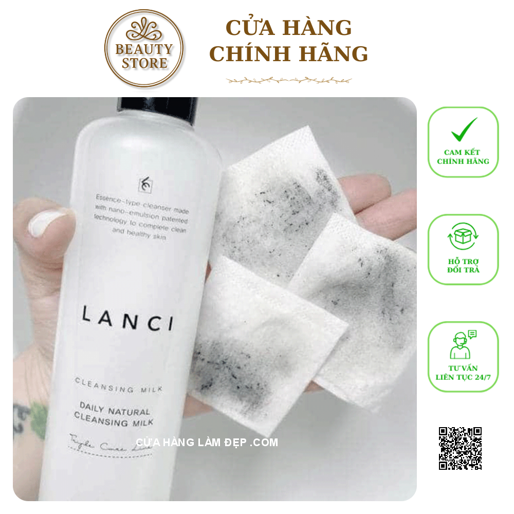 - Sữa Tẩy Trang Daily Natural Cleansing Milk Lanci chứa các thành phần thiên nhiên giàu dưỡng chất, cấp ẩm, vitamin cho da luôn khỏe mạnh, hỗ trợ ngừa lão hóa. Da được thanh lọc, làm sạch vô cùng nhẹ nhàng, an toàn, không có mùi hóa học, không gây kích ứng, đây chính là điểm cộng lớn của Sữa Tẩy Trang Daily Natural Cleansing Milk Lanci mà bạn không nên bỏ qua.