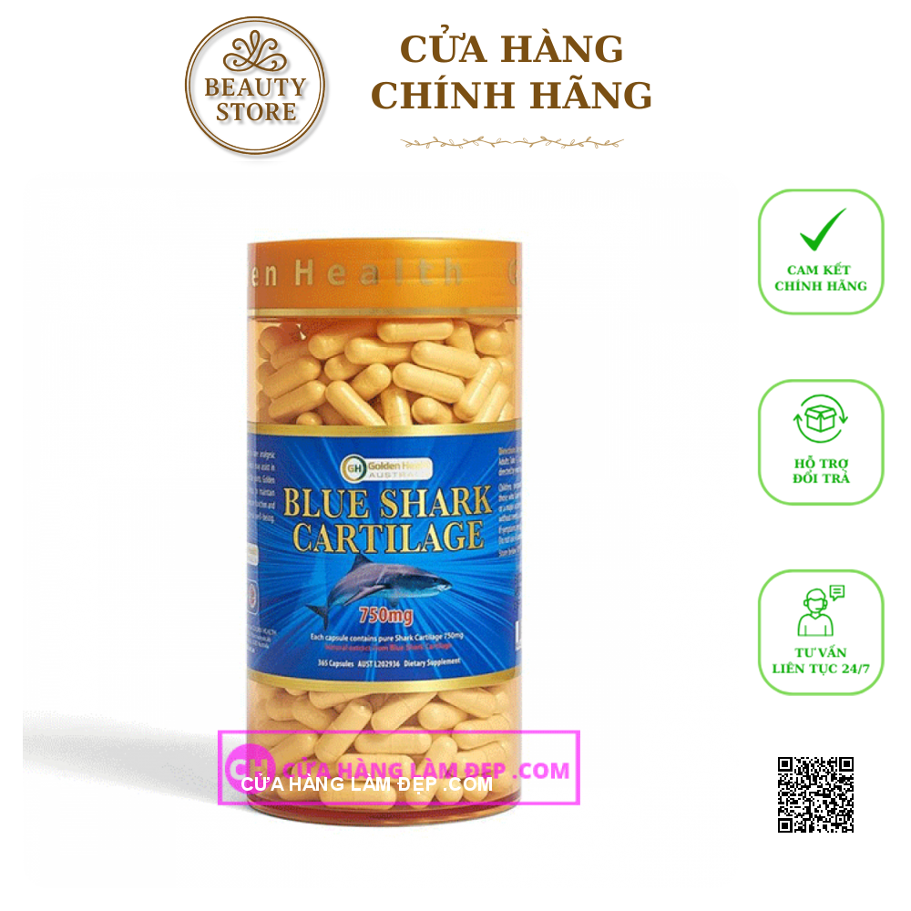 - Sụn Cá Mập Blue Shark Cartilage được sản xuất bởi thương hiệu Golden Health nổi tiếng đến từ Úc. Golden Health Blue Shark Cartilage được chiết xuất chính từ sụn vi cá mập tự nhiên, giúp bổ sung dưỡng chất để tái tạo và phục hồi sụn khớp, dịch khớp.