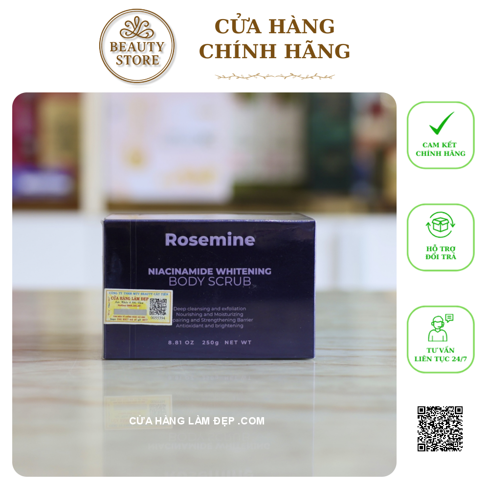 Giới Thiệu Tẩy Da Chết Body Dưỡng Trắng Da Rosemine Niacinamide Whitening Body Scrub: