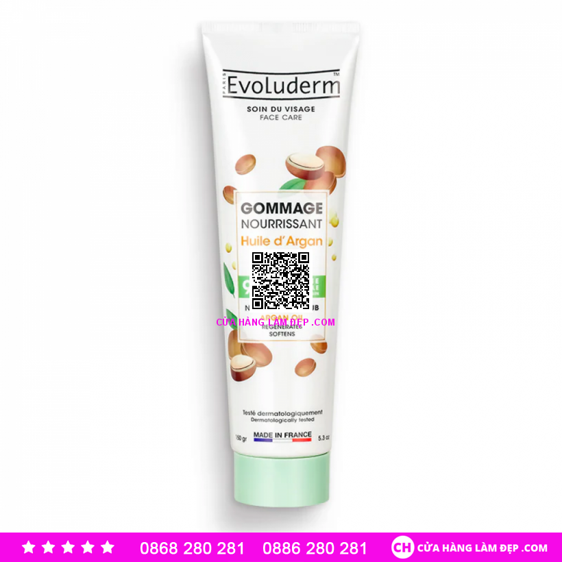 Tại hệ thống Cửa Hàng Làm Đẹp, sản phẩm Evoluderm Tẩy Tinh chất chết dưỡng da mặt tinh dầu Argan 150g có giá 195.000 VNĐ