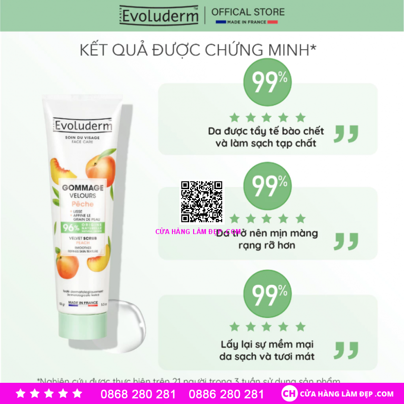 Evoluderm Tẩy Tinh chất Chết Mềm Mịn Da Mặt Chiết Xuất Đào được khách hàng của Hệ Thống Cửa Hàng Làm Đẹp đánh giá cao.