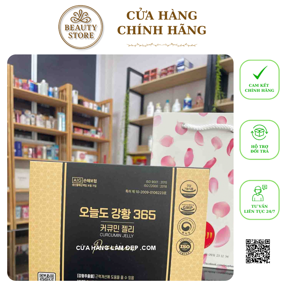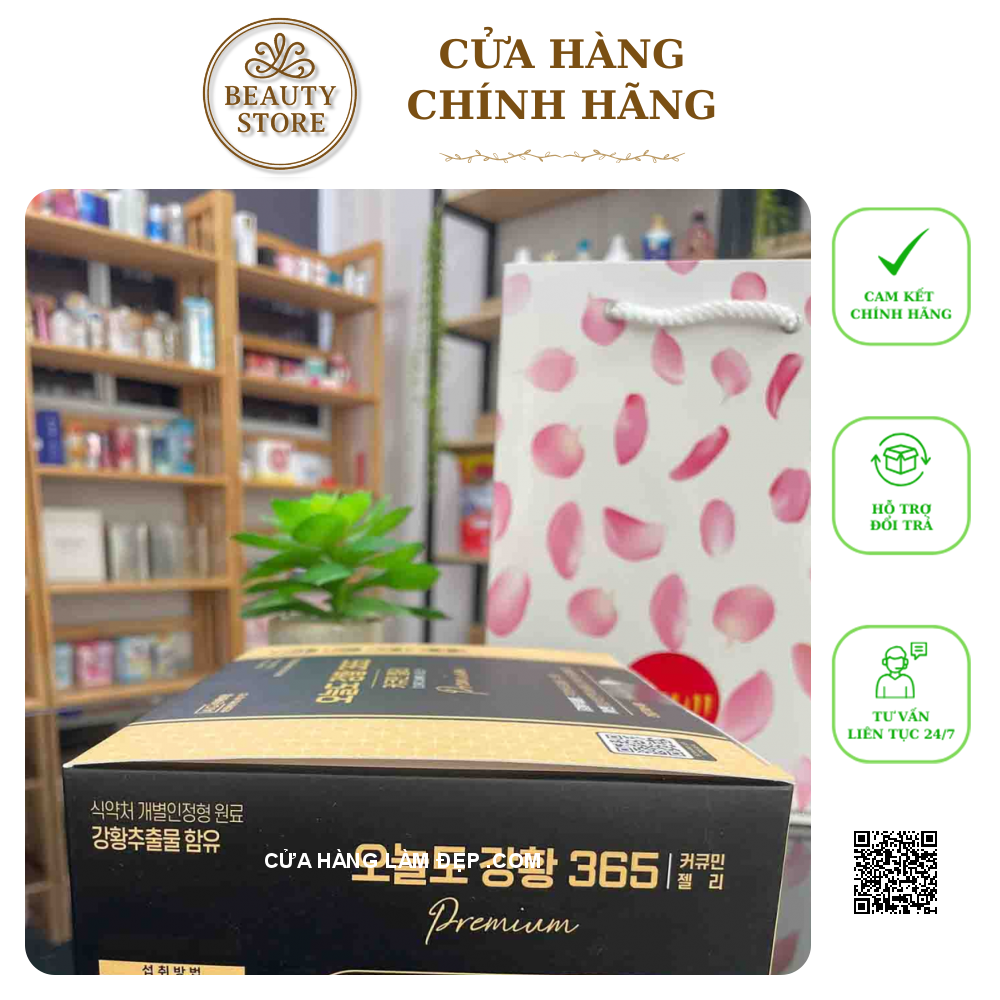 Tại hệ thống Cửa Hàng Làm Đẹp, sản phẩm Thạch Nghệ Collagen Nano Curcumin Jelly 365 Vị Xoài 30 Gói Từ Hàn Quốc có giá 1.350.000 VNĐ