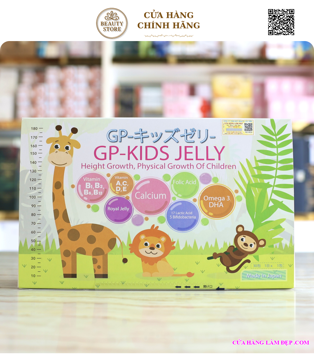 Vì vậy giới khoa học Nhật Bản nghiên cứu kết hợp chế độ dinh dưỡng hợp lý thành dạng thạch món ăn hầu hết trẻ em đều yêu thích. GP-Kids Jelly được tung ra thị trường đã được các mẹ săn đón nhiệt tình, từ mẫu mã cho đến chất lượng, bởi những thành phần cấu tạo nên sản phẩm đã hội tụ khá đầy đủ dưỡng chất mà các bậc phụ huynh mong muốn dành cho con của mình.