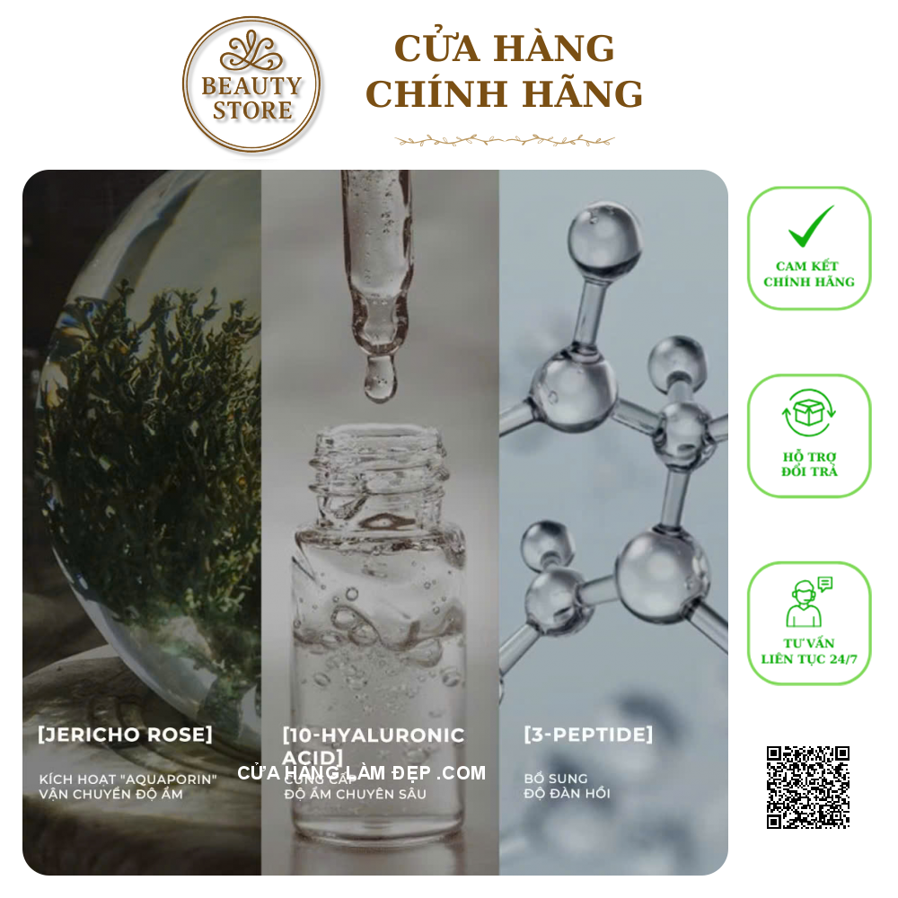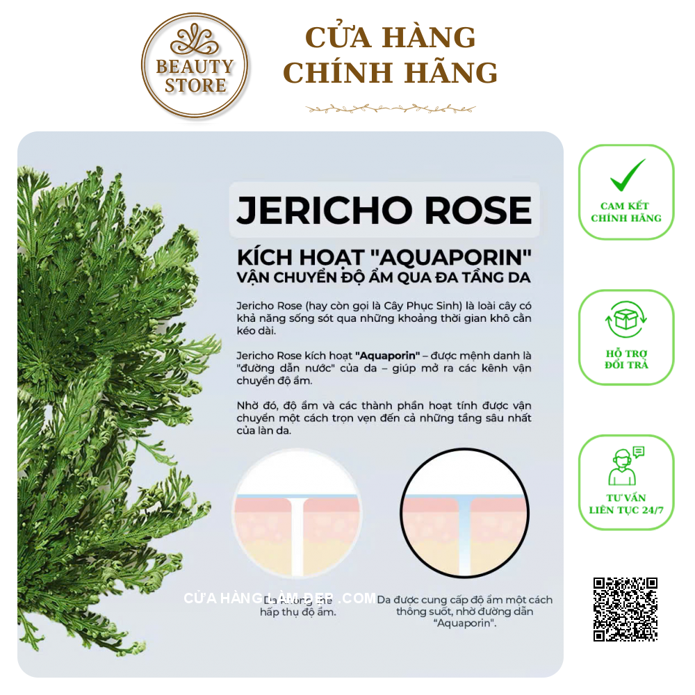 - Chiết xuất Hoa hồng Jericho : Thành phần cốt lõi giúp giữ ẩm và hỗ trợ ngừa mất nước, giúp da luôn ngậm nước và mềm mại.