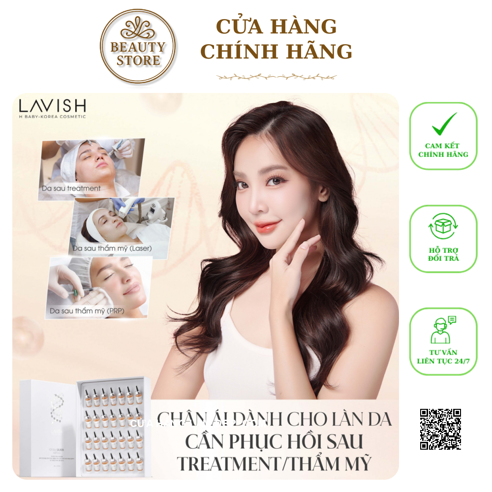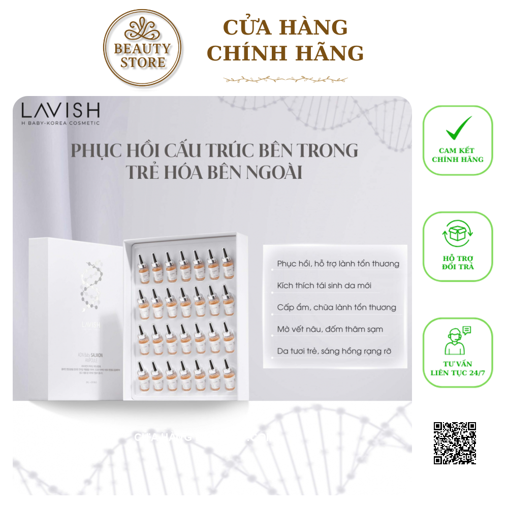 - Liệu trình tái tạo làn da khỏe mạnh, căn bóng, nuôi dưỡng và phục hồi làn da nhạy cảm, tổn thương với DNA Baby Salmon Ampoule Lavish H Baby 28 ống trọn vẹn chu kì 28 ngày thay đổi của làn da.