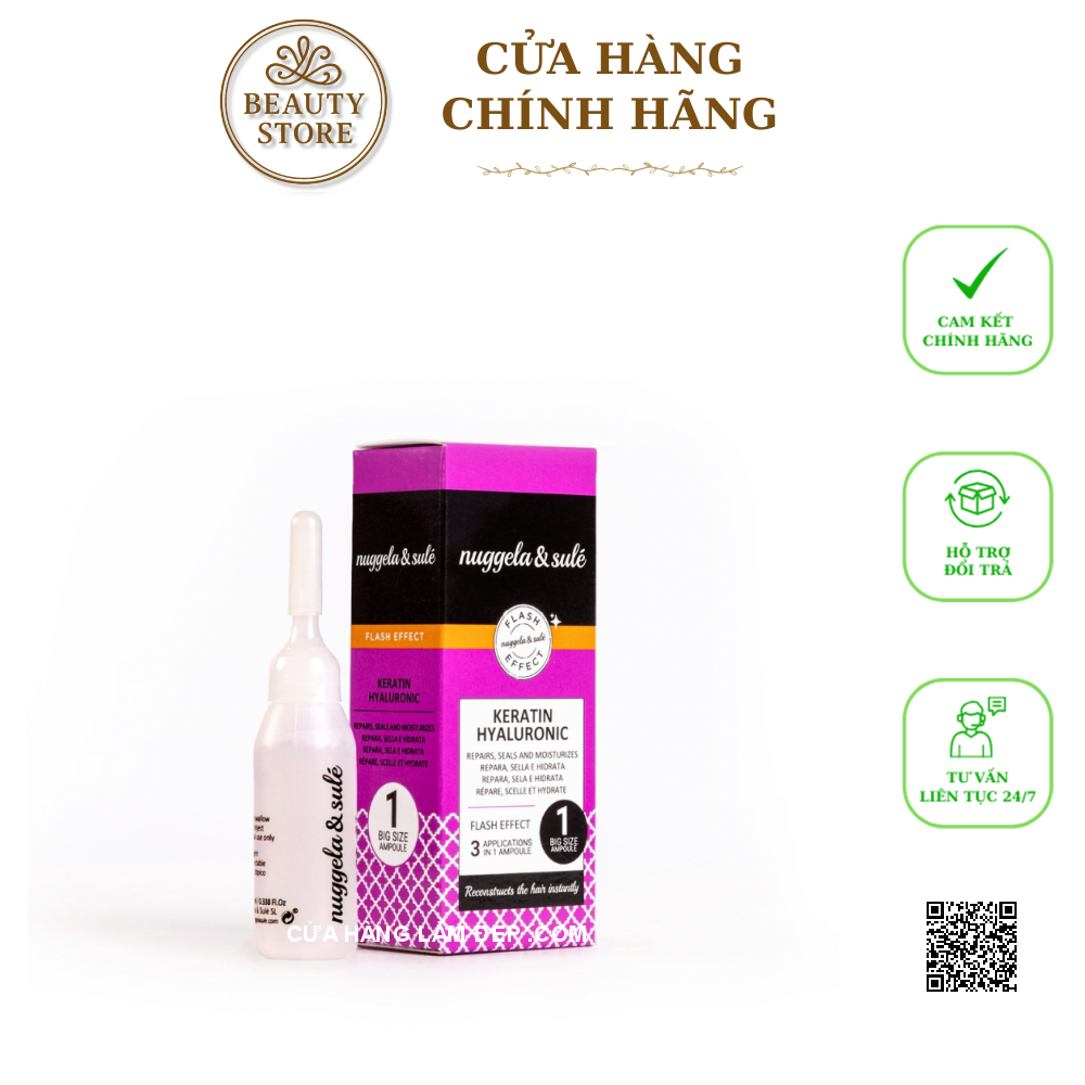 Dưỡng Tóc Nuggela & Sule Keratin Hyaluronic Ampoules với tinh chất cô đặc, nồng độ cao Keratin & HA giúp phục hồi tóc chẻ ngọn, nuôi tóc chắc khoẻ từ sâu bên trong tạo độ bóng và khoẻ cho tóc.