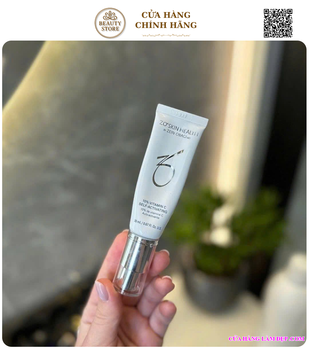 - Vitamin C là thành phần thiết yếu trong chế độ dinh dưỡng hàng ngày và cũng là hoạt chất vàng trong làng chăm sóc da. Vì vậy, Vitamin C được ứng dụng vào các mỹ phẩm chăm sóc da hiện nay. Tinh Chất Dưỡng Trắng Da ZO Skin Health 10% Vitamin C Self-Activating đến từ thương hiệu Zo Skin Health. Sản phẩm có công dụng điều trị và chăm sóc da hư tổn, lão hóa và các vấn đề ảnh hưởng đến sắc đẹp của người tiêu dùng