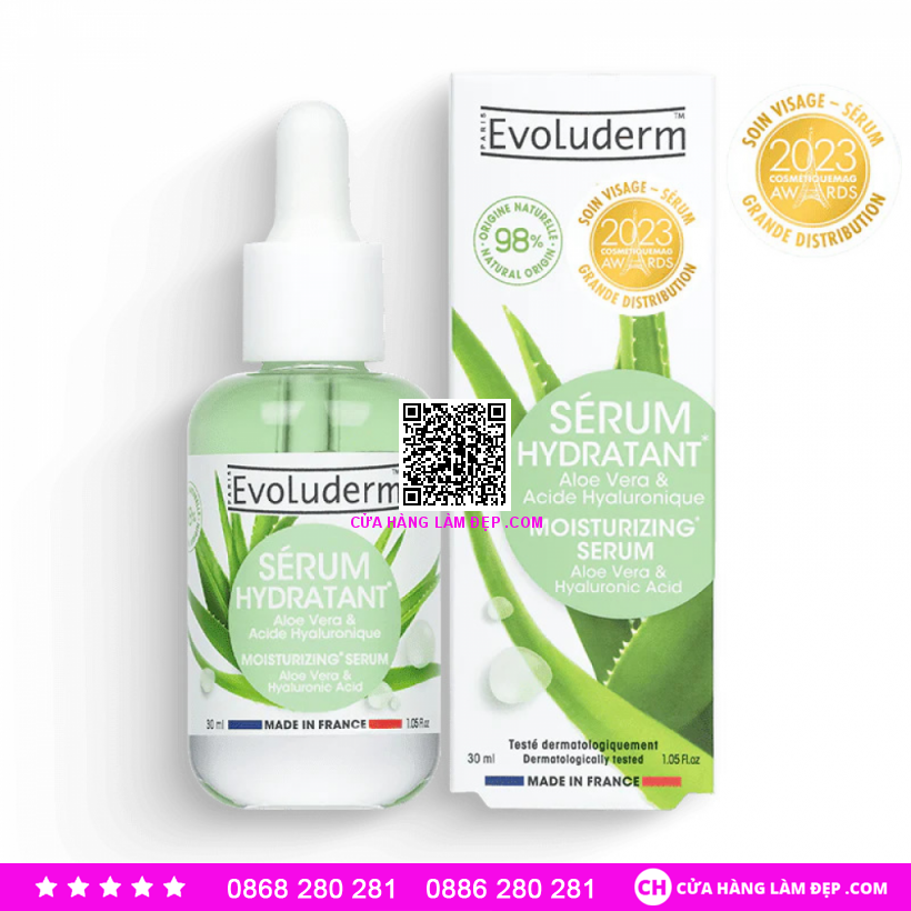 Tại hệ thống Cửa Hàng Làm Đẹp, sản phẩm Evoluderm Serum Hydratant Và Anti-Age Tinh Chất Cấp Ẩm Sâu Và Đẹp Da 30ml từ Pháp có giá 595.000 VNĐ