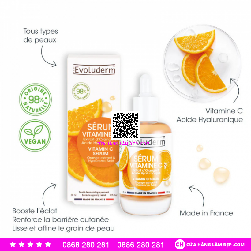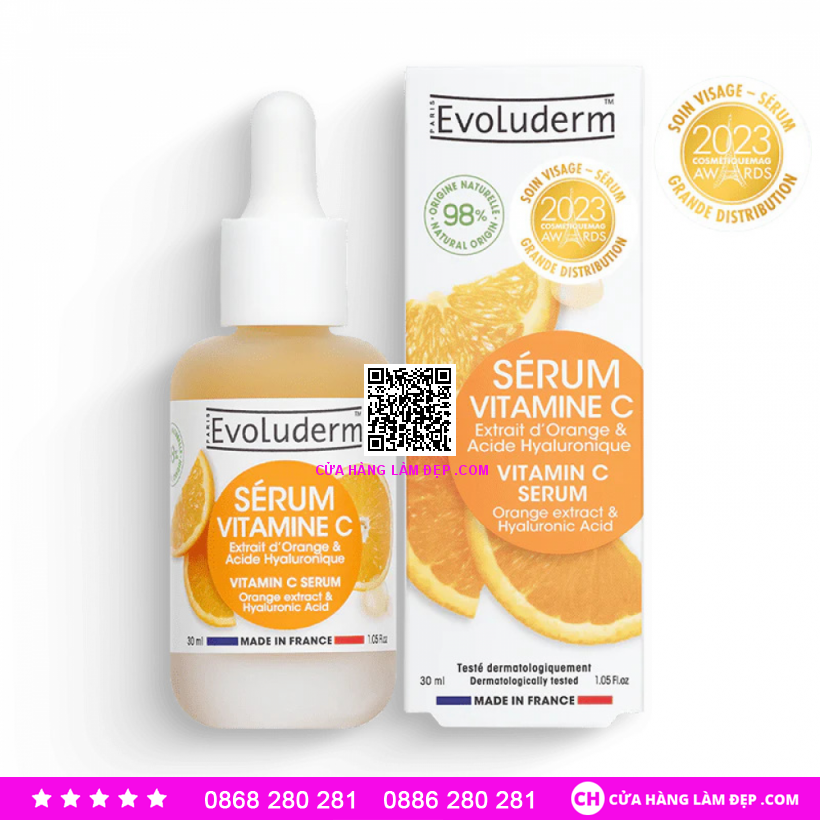 Tại hệ thống Cửa Hàng Làm Đẹp, sản phẩm Evoluderm Serum Vitamin C Tinh Chất Dưỡng Trắng Sáng Da 30ml có giá 550.000 VNĐ