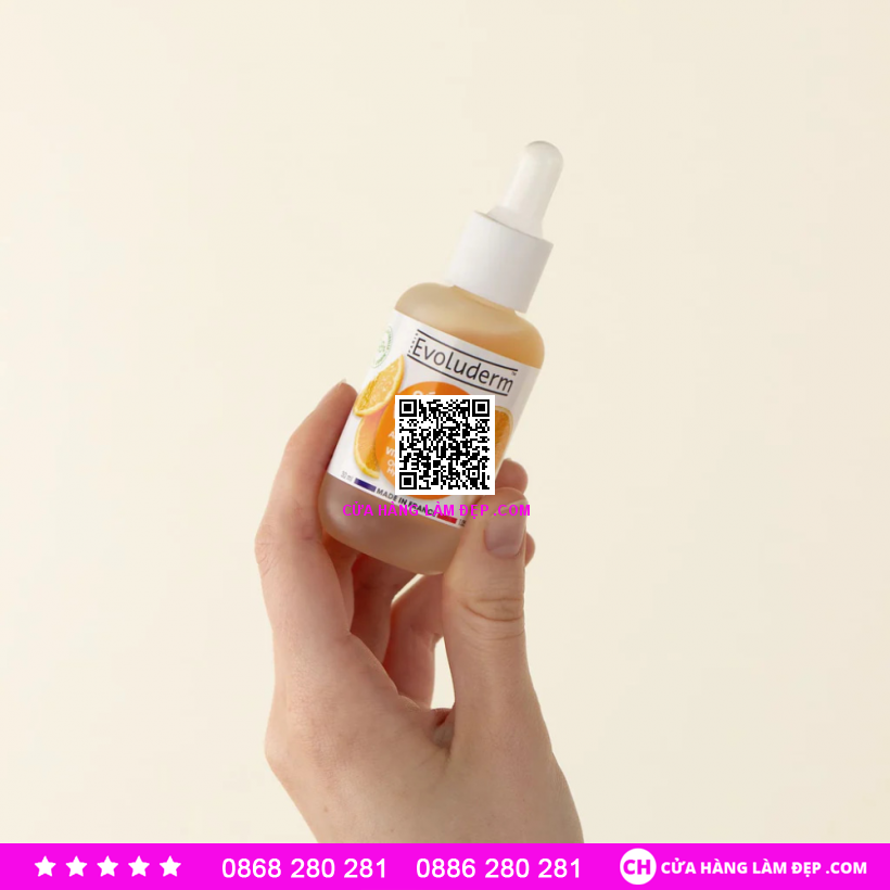 Tinh chất Evoluderm Vitamin C Serum là sản phẩm chăm sóc da nổi bật đến từ thương hiệu mỹ phẩm Pháp Evoluderm, được thiết kế chuyên biệt để dưỡng trắng, làm sáng da và cải thiện sắc tố. Với công thức chứa Vitamin C tinh khiết kết hợp các hoạt chất dưỡng da, serum giúp làm đều màu da, giảm thâm nám và mang lại làn da rạng rỡ, tươi sáng chỉ sau vài tuần sử dụng.