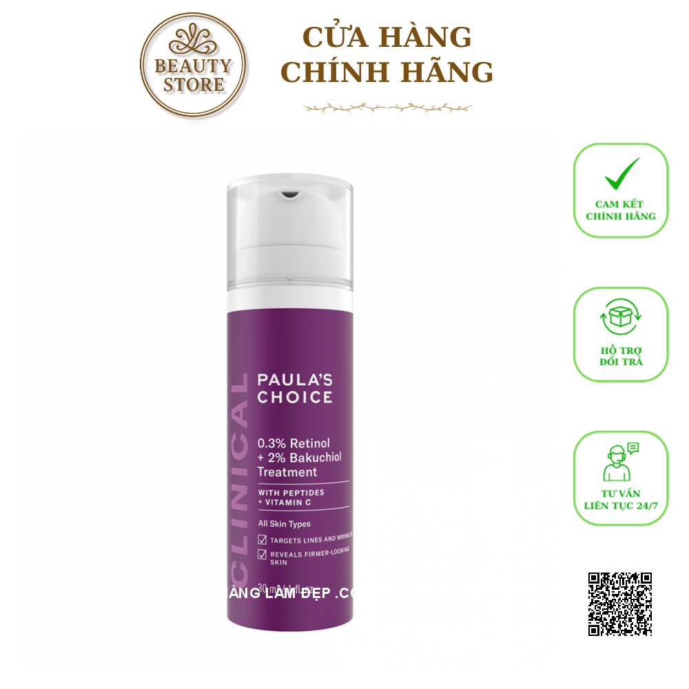 - Bạn có thể tìm mua Tinh Chất Hỗ Trợ Ngừa Lão Hóa Paula’s Choice Clinical 0.3% Retinol + 2% Bakuchiol Treatment qua website: cuahanglamdep.com
