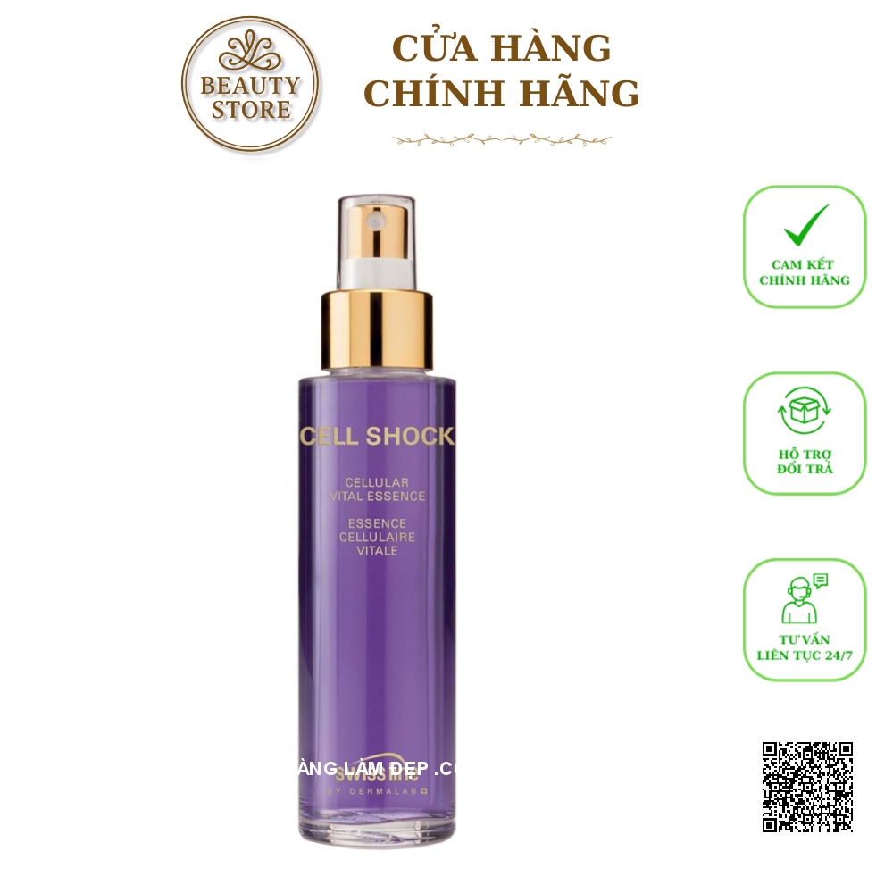 - Tinh chất cô đặc từ thực vật trong dưỡng chất phục hồi Tinh chất da Cell Shock Cellular Vital Essence Swissline có cấu trúc giống một lớp film mỏng bao phủ bề mặt như lớp che khuyết điểm êm dịu và hoàn hảo giúp duy trì sự tươi mới và dưỡng ẩm cho làn da suốt cả ngày.