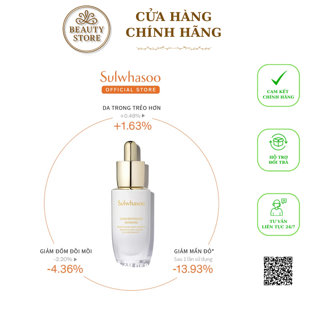 Tại hệ thống Cửa hàng làm đẹp, Tinh Chất Nhân Sâm Sáng Da, Mờ Đốm Nâu Sulwhasoo Concentrated Ginseng Brightening Spot Ampoule có giá: 2.860.000 VND