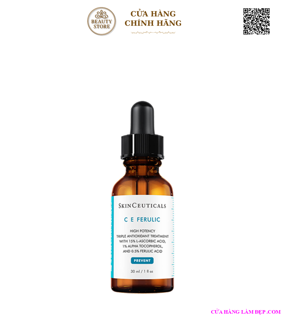 SkinCeuticals C E Ferulic là tinh chất chống oxy hóa cao cấp đến từ Mỹ, nổi tiếng toàn cầu với công thức “vàng” kết hợp 15% Vitamin C nguyên chất (L-Ascorbic Acid), 1% Vitamin E và 0.5% Ferulic Acid. Sản phẩm được nghiên cứu lâm sàng với hiệu quả rõ rệt trong việc làm sáng da, cải thiện độ săn chắc và giảm nếp nhăn – đặc biệt phù hợp với làn da thường, da khô và da nhạy cảm.
