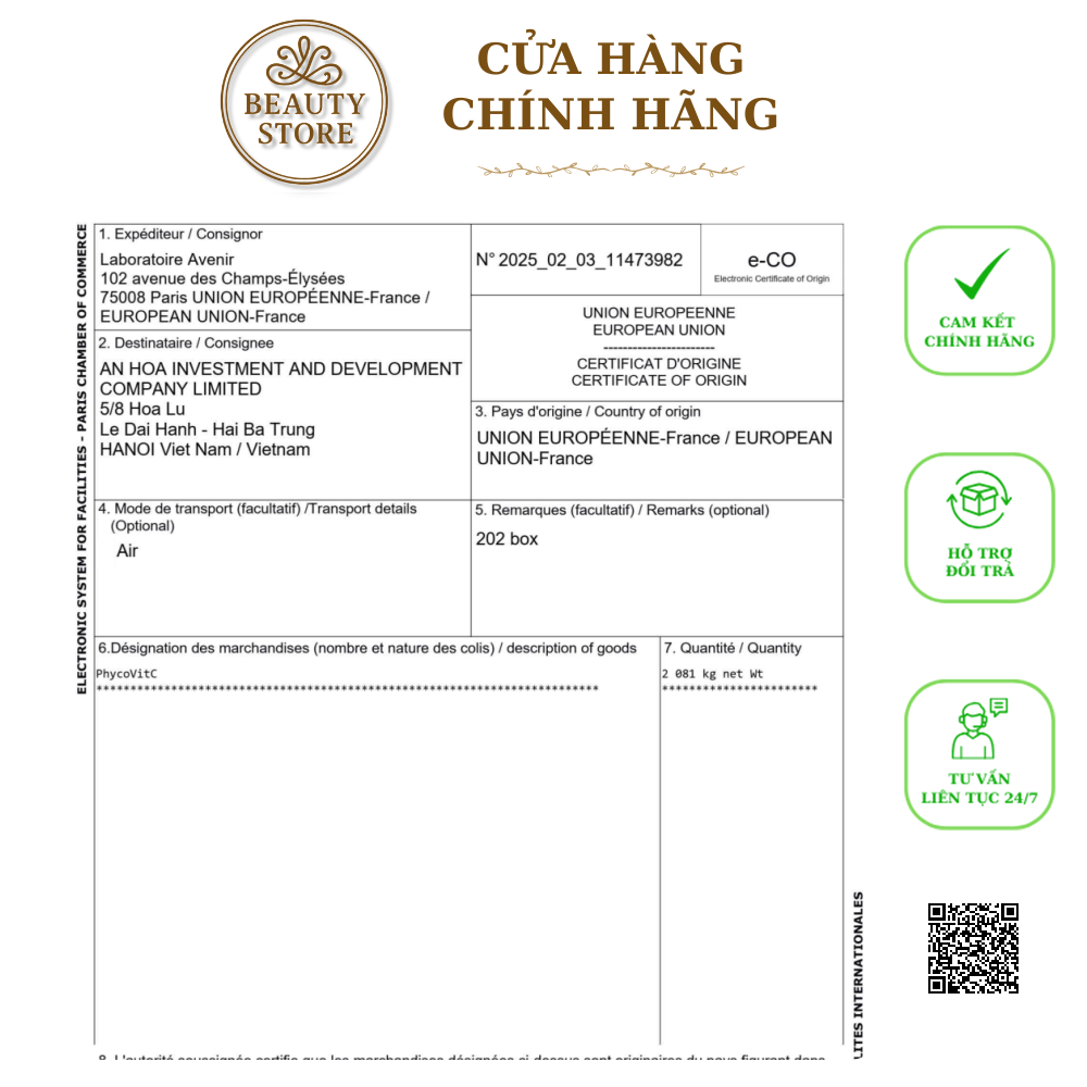 PhycovitC là siêu tinh chất tảo tươi thế hệ mới đến từ Laboratoire Avenir – Pháp, nổi bật với công thức kết hợp giữa Phycocyanin, Vitamin C và tinh dầu hoa bất tử Immortelle. Đây là sản phẩm chăm sóc sức khỏe và sắc đẹp toàn diện, giúp hỗ trợ trẻ hóa làn da, tăng sức đề kháng, thải độc và Hỗ Trợ Ngừa Lão Hóa từ bên trong.
