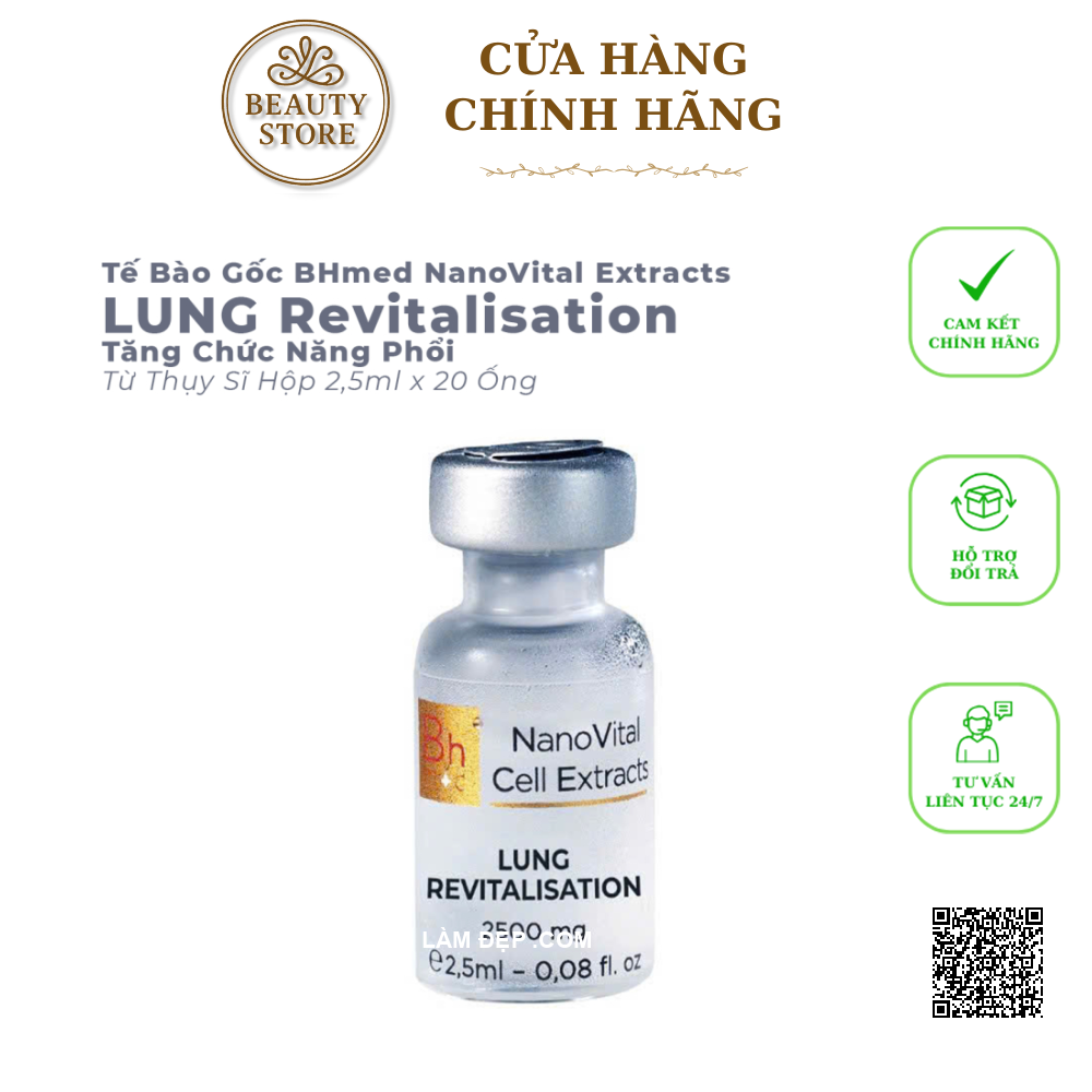 Bhmed Lung Revitalisation là sản phẩm thuộc dòng NanoVital Cell Extracts của thương hiệu giảm liệu sinh học BHMED đến từ Thụy Sĩ, nổi tiếng với các liệu pháp phục hồi cơ quan chuyên sâu. Mỗi liệu trình chứa các peptide sinh học phân tử Tinh chất hoàn toàn tự nhiên, kết hợp công nghệ siêu lọc nano hiện đại, giúp phục hồi chức năng phổi, tăng cường trao đổi khí và hỗ trợ ngừa các bệnh lý nguy hiểm như viêm phổi, lao phổi, tắc nghẽn phổi mãn tính.