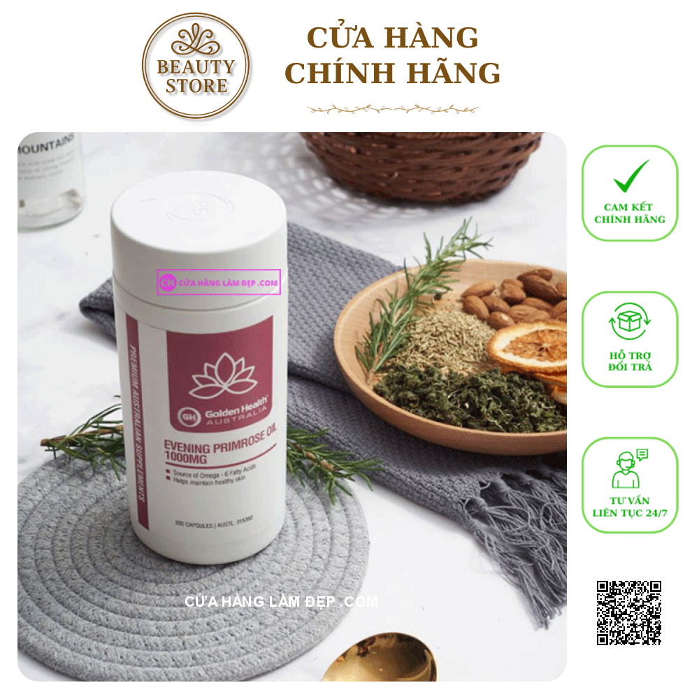 - Viên uống tinh dầu hoa anh thảo Golden Health Evening Primrose Oil 1000mg là sản phẩm được nghiên cứu và phát triển bởi công ty Golden Health Australia. Với thành phần có nguồn gốc từ thảo mộc quý trong tự nhiên, sản phẩm lành tính với cơ thể và hiệu quả trong việc duy trì sắc đẹp của người phụ nữ. Mỗi lọ chứa 200 viên nang tiện lợi khi sử dụng.