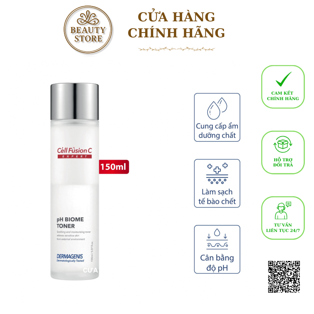 Toner Cấp Ẩm & Tăng Cường Hàng Rào Bảo Vệ Da Cell Fusion C Expert Dermagenis pH Biome Toner là sản phẩm nước cân bằng da chuyên sâu đến từ thương hiệu dược mỹ phẩm Hàn Quốc Cell Fusion C, nổi tiếng với các dòng chăm sóc da nhạy cảm và da sau điều giảm. Toner này ứng dụng công nghệ pH Biome Complex giúp cân bằng hệ vi sinh vật trên da, cấp ẩm sâu và tăng cường hàng rào bảo vệ da, mang lại làn da mềm mại, khỏe mạnh và đàn hồi hơn.