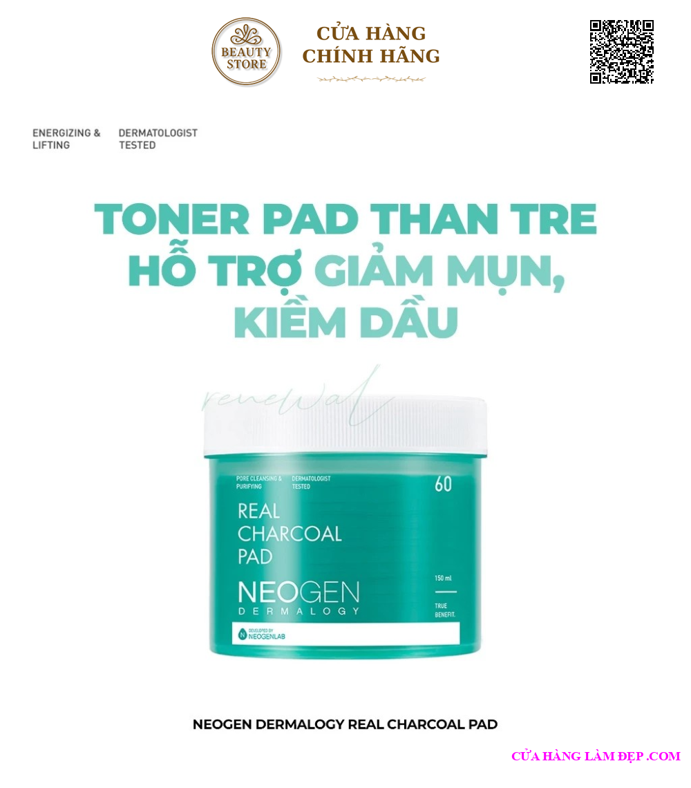 Tại hệ thống Cửa Hàng Làm Đẹp, sản phẩm Neogen Dermalogy Real Charcoal Pad Toner Pad Than Tre Kiềm Dầu Giảm Mụn 60 miếng từ Hàn Quốc có giá 680.000 VNĐ