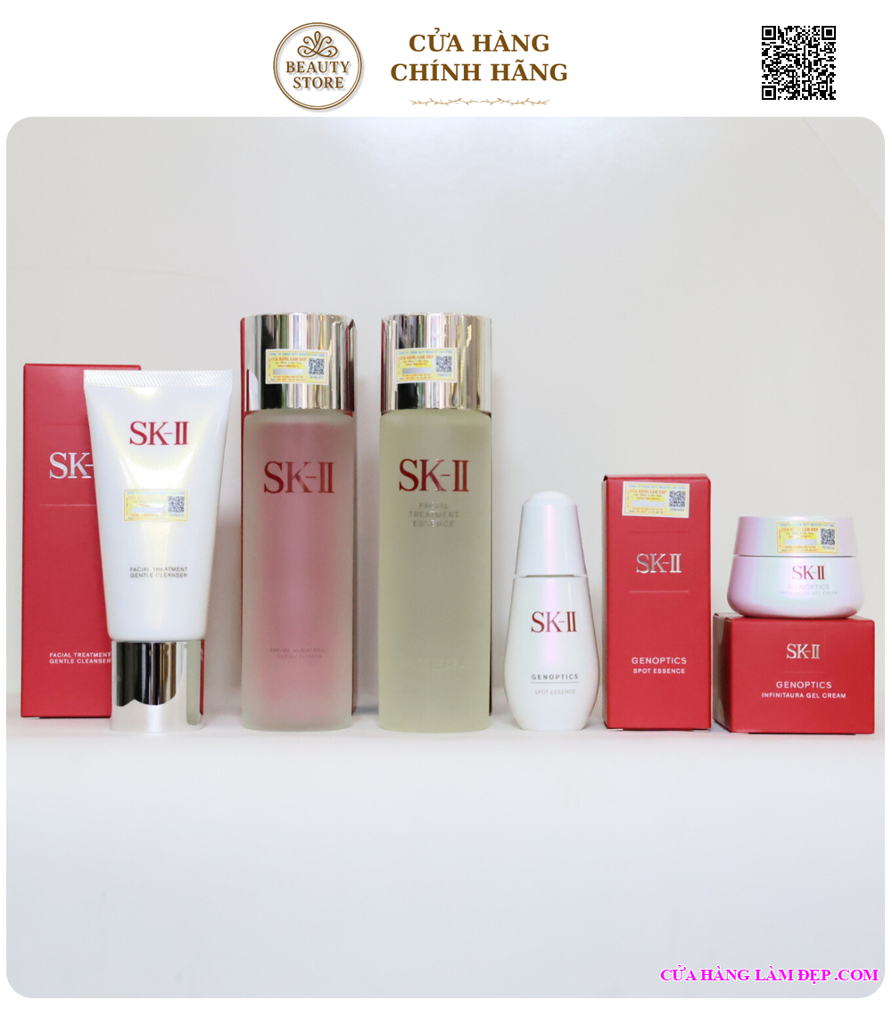 Bộ 5 món cao cấp từ SK-II là giải pháp chuyên sâu dành cho làn da nám, xỉn màu và không đều màu. Sự kết hợp giữa tinh chất đặc trị GenOptics Spot Essence và kem dưỡng GenOptics Infinitaura Gel Cream giúp tác động kép: làm mờ sắc tố – dưỡng sáng – cấp ẩm, mang lại làn da rạng rỡ và trong trẻo hơn từng ngày.