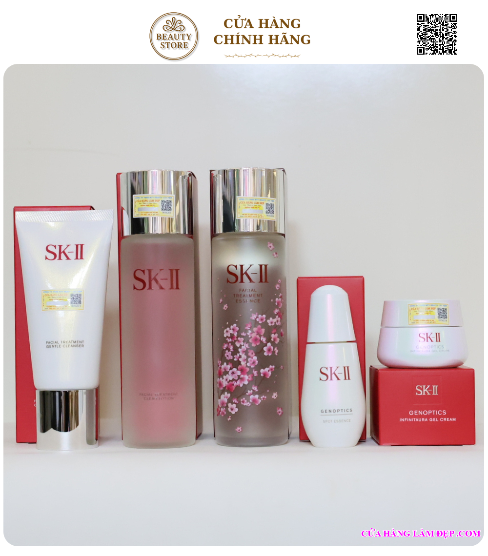 Bộ 7 món cao cấp từ SK-II là giải pháp chăm sóc da chuyên sâu cho làn da nám, tàn nhang và lão hóa. Sự kết hợp giữa tinh chất đặc trị GenOptics Spot Essence và dòng SkinPower giúp tác động kép: làm mờ sắc tố – tái tạo da – tăng độ đàn hồi.