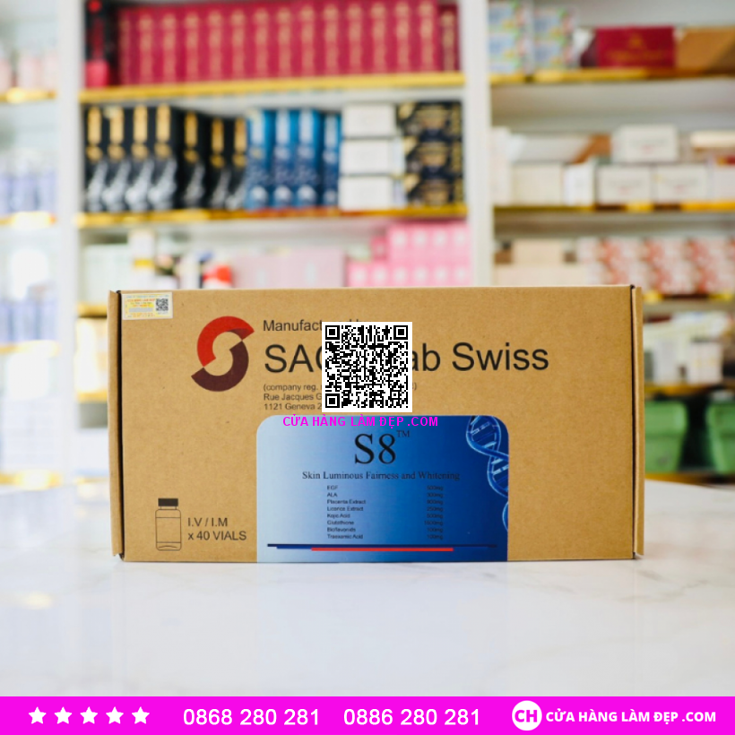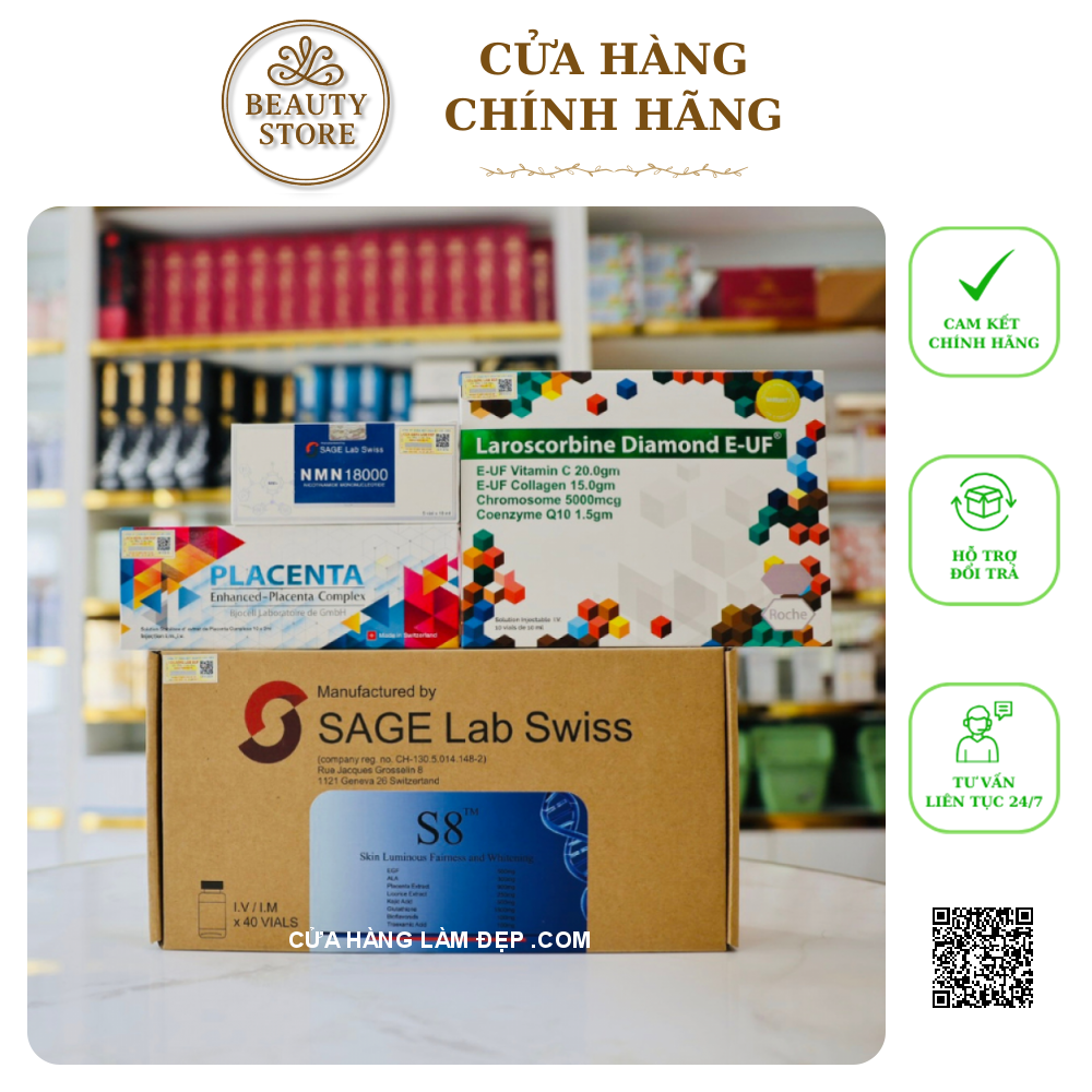 - Bạn có thể tìm mua Bộ Truyền Trắng Da S8 SAGE Lab Swiss + Laroscorbine Diamond E-UF + Placenta Complex + SAGE Lab Swiss NAD NMN 18000 qua website: cuahanglamdep.com