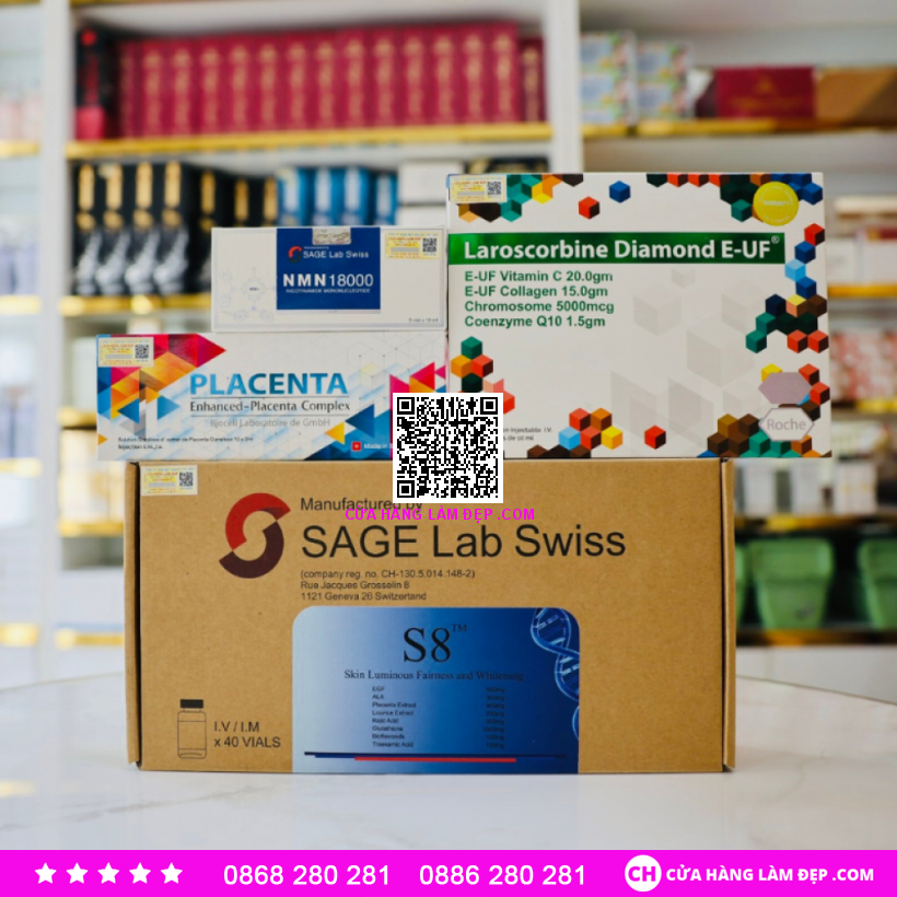 6. Địa Chỉ Mua Bộ Truyền Trắng Da S8 SAGE Lab Swiss + Laroscorbine Diamond E-UF + Placenta Complex + SAGE Lab Swiss NAD NMN 18000 Chính Hãng: