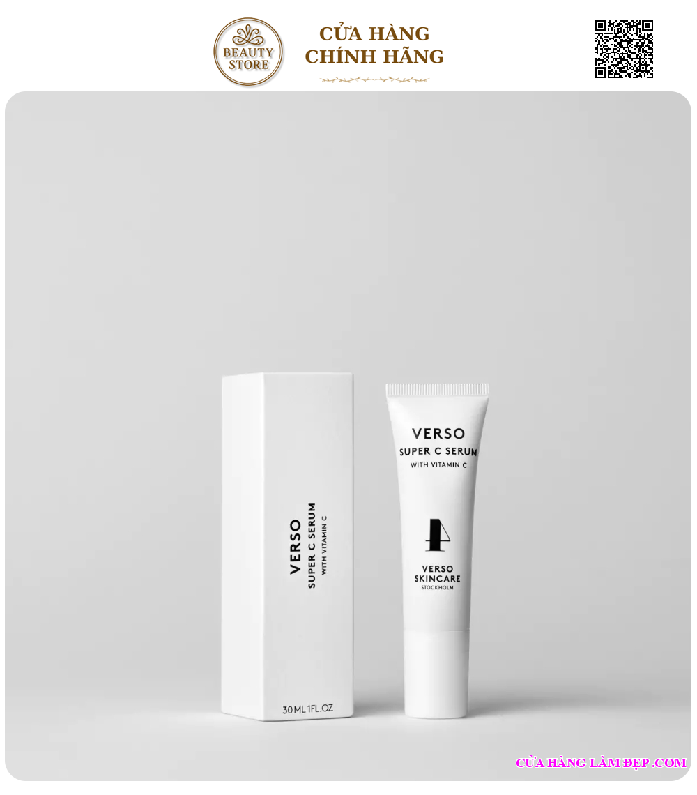 Verso Super C Serum là serum Vitamin C cao cấp giúp tăng cường độ rạng rỡ, làm đều màu da và bảo vệ da trước các tác nhân môi trường. Sản phẩm được thiết kế như một bước chăm sóc da hằng ngày, giúp làn da xỉn màu, mệt mỏi trở nên tươi sáng, khỏe khoắn và tràn đầy sức sống hơn.