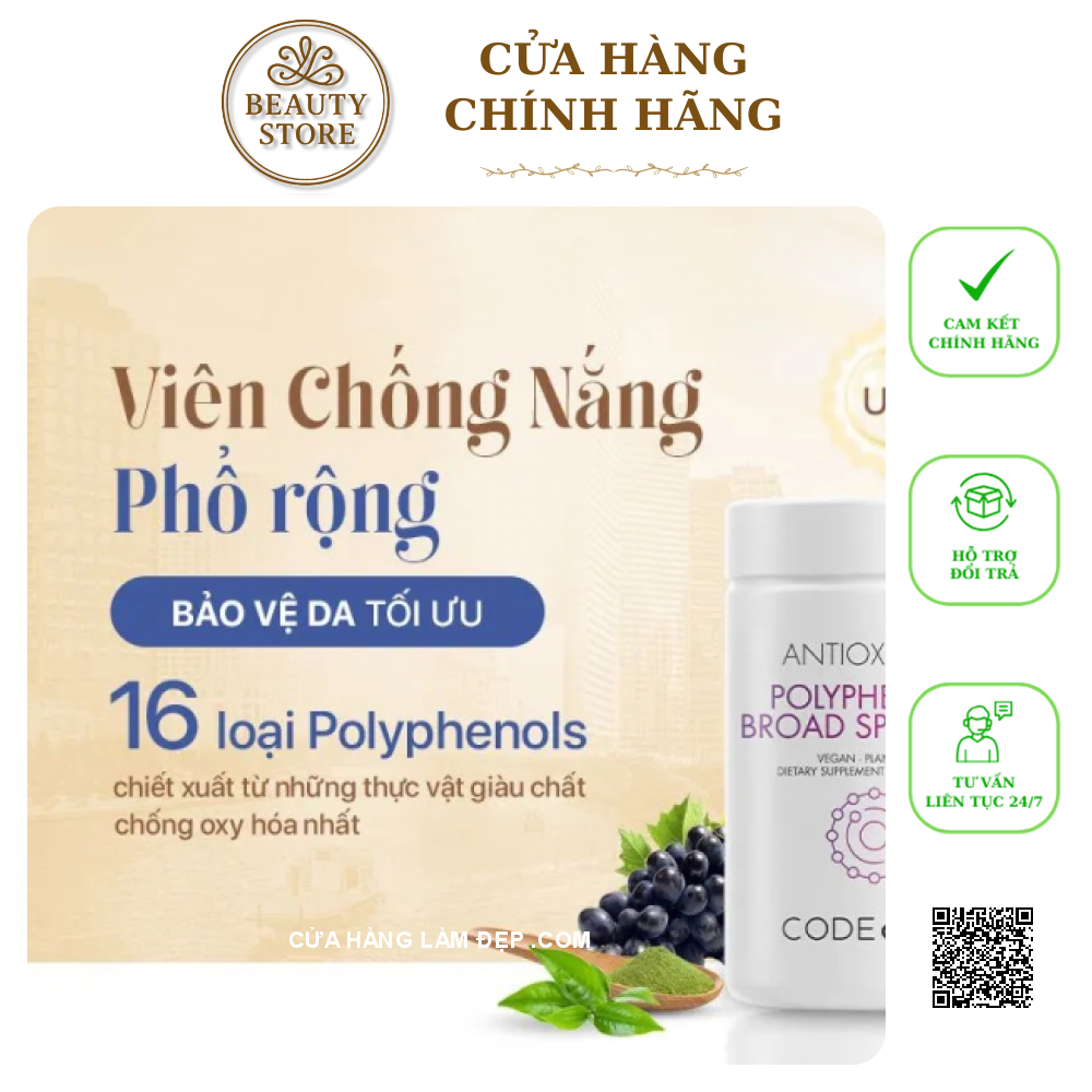 - Bạn có thể tìm mua Viên Chống Nắng Sáng Da Code Age Antioxidant Polyphenols Broad Spectrum qua website: cuahanglamdep.com