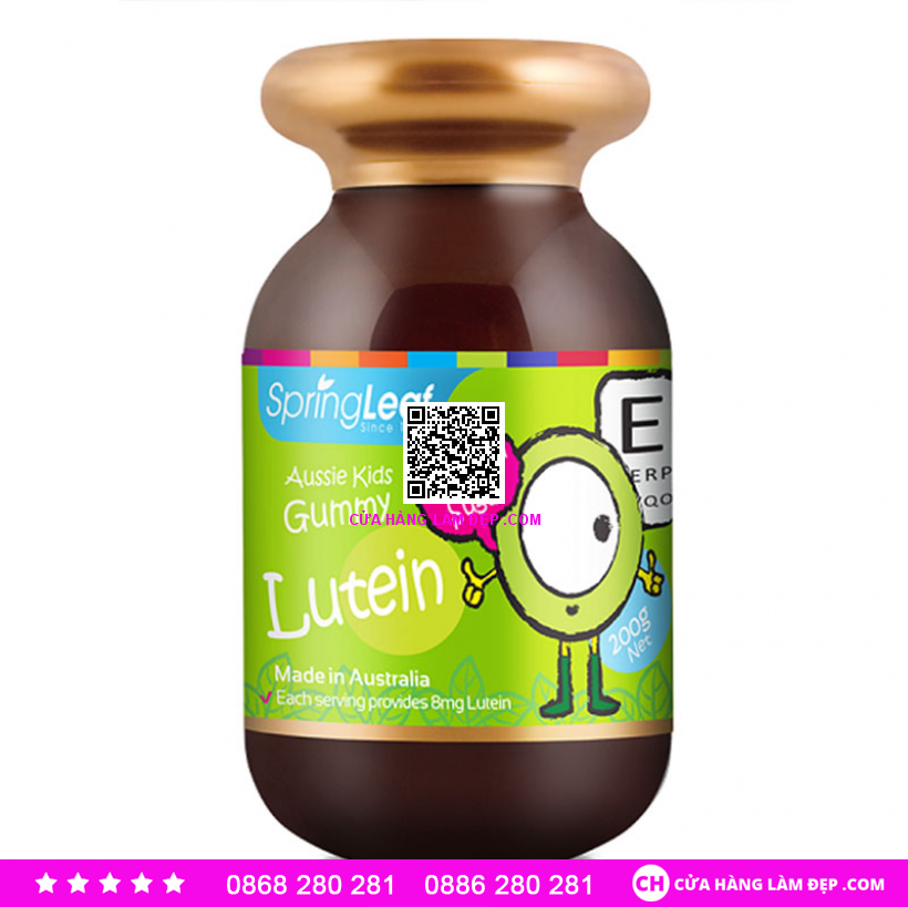 - Viên nhai dạng kẹo bổ mắt cho bé Spring Leaf Aussie Lutein Kids Gummy của Úc bổ sung các dưỡng chất thiết yếu cho sự phát triển sức khỏe mắt của bé. - Viên nhai spring leaf lutein gummy cung cấp hàm lượng Lutein cao hỗ trợ bé có một đôi mắt sáng tinh anh. - Với hình thù động vật đáng yêu cùng hương kiwi thơm ngon sẽ giúp bé yêu nhà bạn không còn kén ăn.